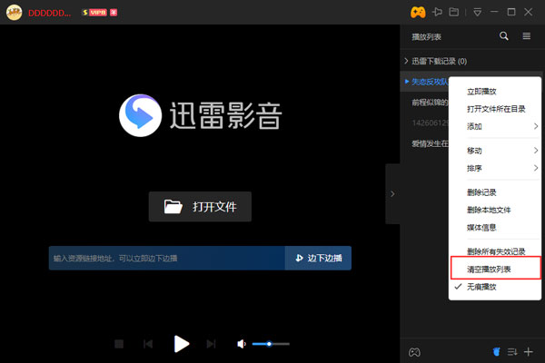 (2)在播放列表中,点击右键---清空播放列表,可清空当前所有播放列表