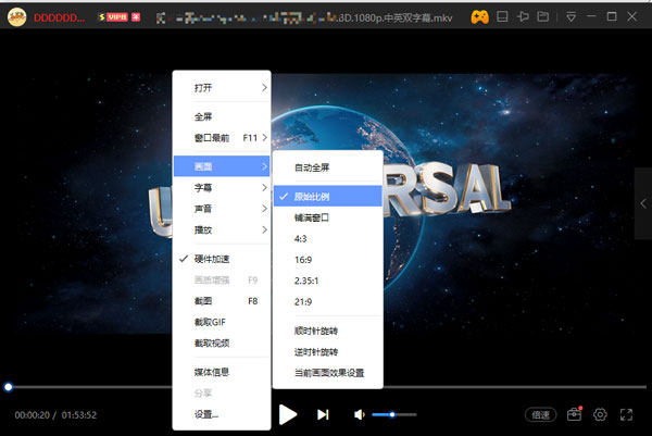 (1)在播放画面中,点击“右键”---勾选“硬件加速”,即可以开启,再次点击即关闭