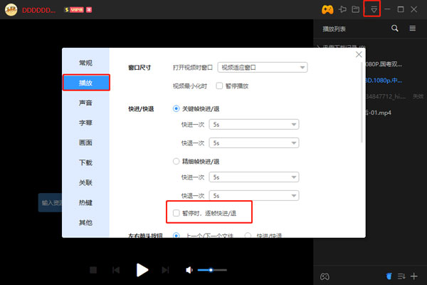 (2)勾选下方“暂停时,逐帧快进/退”即可