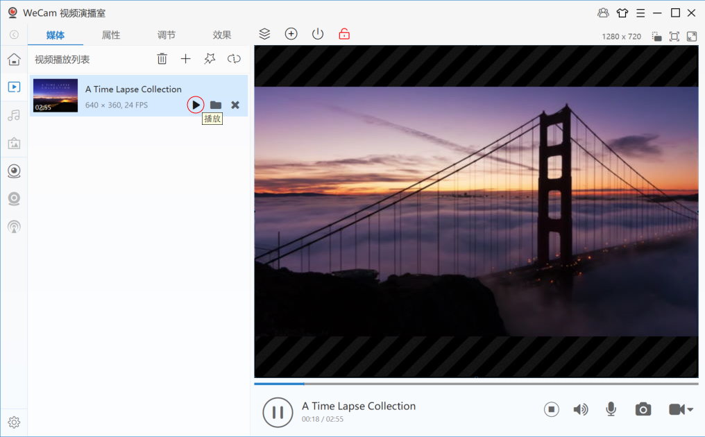 3、双击加入的视频文件或点击该视频上的播放按钮以播放该视频,