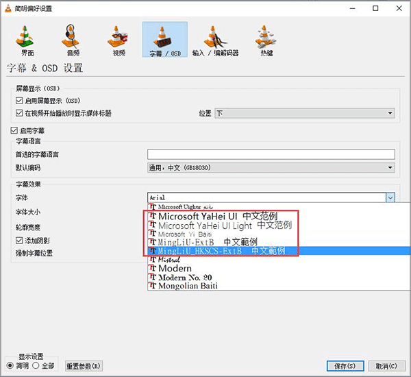 3、然后将字幕的字体修改为其中的任意一个中文字体,修改完成后点击右下角的“保存”。