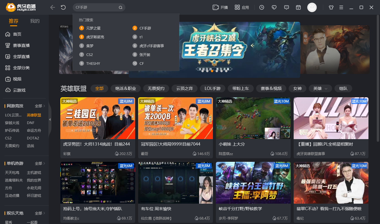 【锁定虎牙 精彩不断看不完】四大频道:网游竞技、单机热游、娱乐天地、手游休闲