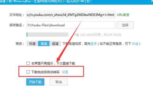 6、如果你喜欢的视频还没开始下的话,你可以在下载前就勾选【下载完成后自动转码】,转码的设置和上面是一样的;