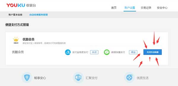 第二步:在 我的账户 界面的右边(看我截图的箭头标志哈);连续包月服务的下面有个 关闭服务> 点进去,选择右边的 关闭自动续费 点一下即可!