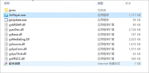1、在本站下载软件,将其解压之后,双击点开JinPlayer.exe文件;