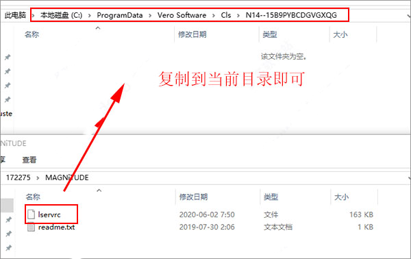 7、将MAGNiTUDE文件夹中的lsevrc复制到C:\ProgramData\Vero Software\Cls\N14--15B9PYBCDGVGXQG中,每一台电电脑都不同。