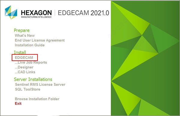 2、安装程序,如图所示,点击安装Edgecam选项。