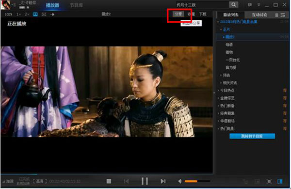 1) 点击“PPTV网络电视”播放器界面右上角“分享”按钮。