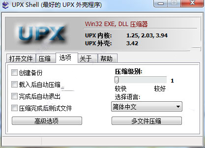 3、内置了 UPX 1.25、UPX 2.03 和 UPX 3.94 压缩引擎。