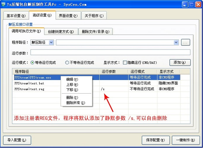 2、添加注册表reg文件,程序将默认添加了静默参数,可以自由删除