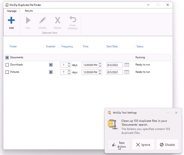 有什么能比自动清理更好呢?有了这项高效的功能,您将不再需要通过单击来执行清理操作,它会自动执行。使用我们成熟的 WinZip 后台工具,您可以设置规则来删除旧文件,节省空间,保持速度,以及保护文件安全。