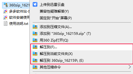 通过右键菜单解压文件: