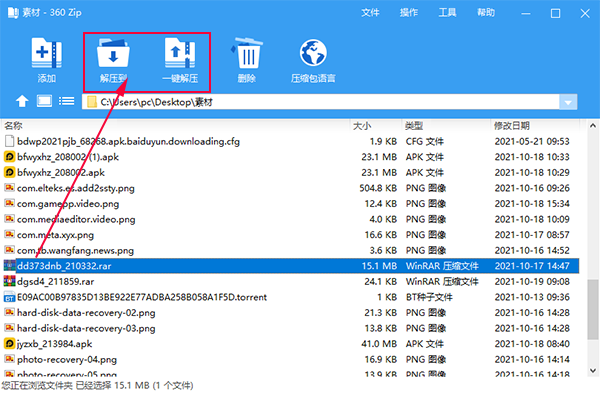 4、接下来选择到想解压的压缩包,点击解压或一键解压
