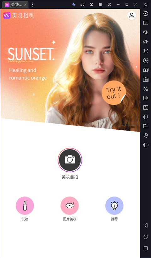 美妆相机电脑版是一款借助安卓模拟器运行的美妆自拍神器,运行非常流畅,操作简单方便,拥有领先的立体技术,可以通过对五官的3D精准定位,同时融入了裸妆、韩妆、明星妆、搞笑妆、日系五种妆容,让你的美妆看上去更立体、更贴合。同时相比较于市面上大多数相加软件来说,其功能也十分的丰富强大,拥有素颜自拍、时尚妆容、随心试妆、领先技术、美妆秘籍五大特色功能等你来体验。让你只需有了它,即可无论是在何时何地,无需上任何妆容,甚至连打底都不需要,即可通过强大的智能美妆技术,让你的妆容和五官完美融合一秒拥有自然美妆,为你轻松打造立体妆容。感兴趣的朋友欢迎下载体验。