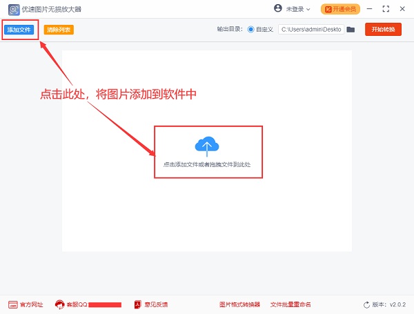 步骤1,电脑上下载“优速图片无损放大器”软件工具,然后安装并使用,点击“添加文件”按钮将需要放大的图片添加到软件中,软件支持批量放大(一次性不要添加太大哦)!