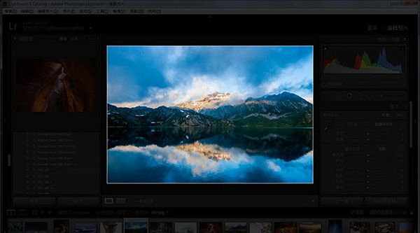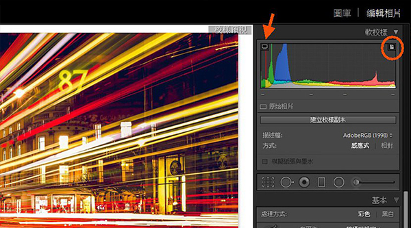 编辑照片时,平常右上角的色阶分布图让你看到颜色及曝光分布,但只要你按「S」键,就会变成校样预视模式,照片底部变白色,色阶图也变软校样。这个功能是查看照片的色彩,是否位于屏幕或输出装置的色域或范围内。