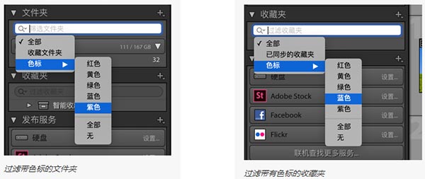 您现在可以根据分配的色标来过滤文件夹、收藏夹、收藏夹集和智能收藏夹。