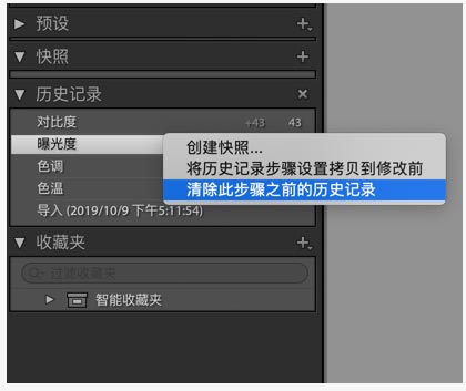 - 右键单击 (Win) 或按住 Control 键单击 (macOS) 所选步骤,然后选择清除此步骤之前的历史记录。