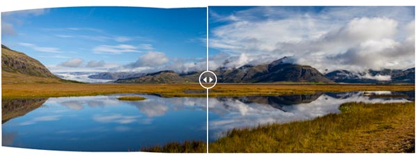 使用该滑块可分别查看选择填充边缘选项之前(左)和之后(右)的全景图。