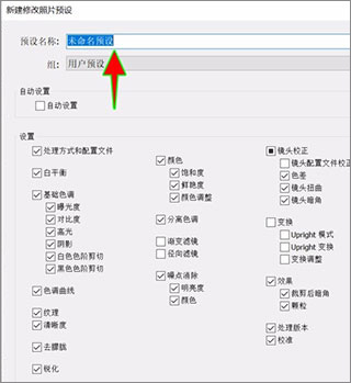 5、最后界面上会弹出一个新建预设面板,我们在面板中设置好预设的名称,并勾选想要保存的设置选项,再点击面板右下角的“创建”按钮就可以成功的创建并保存预设了。