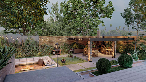 5、在此Lumion 10.5渲染中,内容库中的高品质模型和其他项目为后院设置了一种活生生的感觉,一种温暖而诱人的感觉。