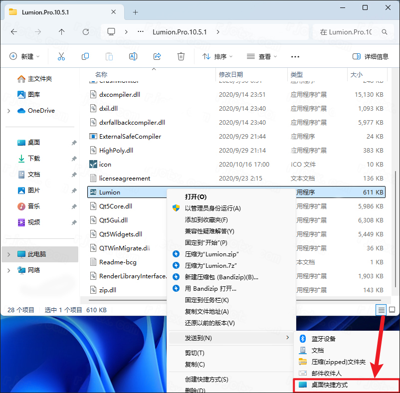 2、鼠标右击【Lumion】,点击【发送到→桌面快捷方式】