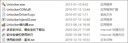 1、在本站下载解压unlocker强行删除工具,得到原文件和部分相关文件: