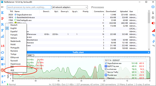 除了基本的限速功能外,NetBalancer Free还提供了丰富的流量相关参数,用户可以通过该软件查看系统的总流量情况,包括上传和下载的数据量、连接数等信息,这些数据对于用户了解网络使用情况、优化网络配置具有重要意义。