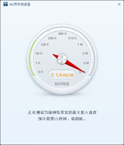 2、点击【360宽带网速测试】之后程序会自动运行开始测速