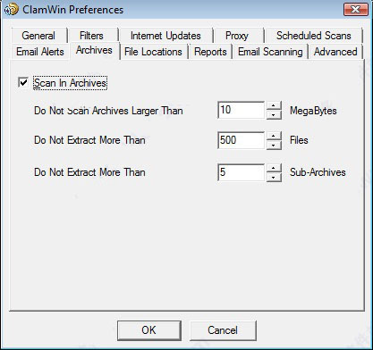 ClamWin可以检查存档文件(如.zip文件)中的文件是否存在病毒。