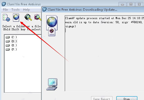 2、最好在查杀时候,更新下病毒库,当然你每次启动clamwin时候都会自动更新。