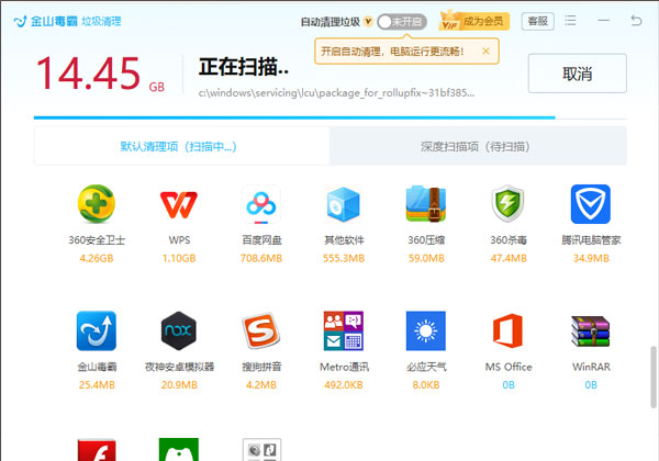 它包含默认清理项和深度扫描项,通过扫描硬盘或网上残余的垃圾,一键清理让电脑运行更流畅,它还支持自动清理垃圾的功能。