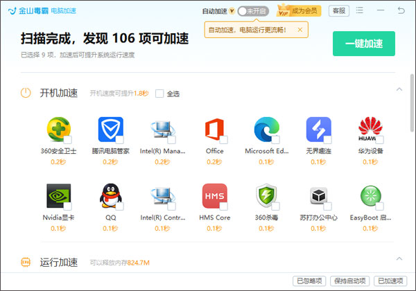 检测开机运行的程序,并提示,让用户清楚自己的电脑开机情况,做出调整。