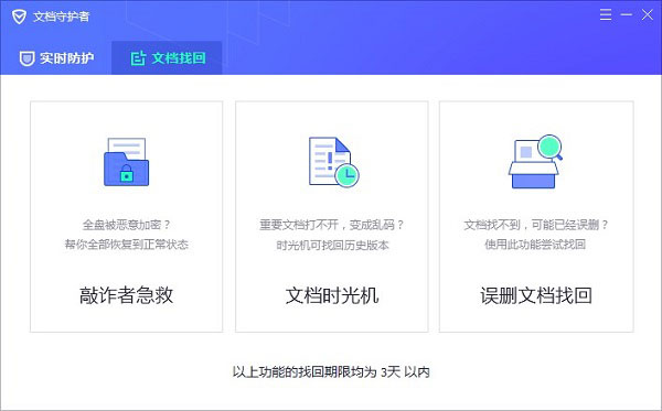1、全新功能文档守护者:敲诈者病毒急救、文档时光机、误删除文档找回