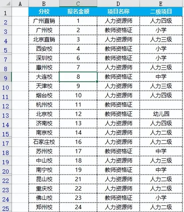 有些时候,只需要将重复值标记出来,而不是直接去重,这时候可以用条件格式,数据如下。
