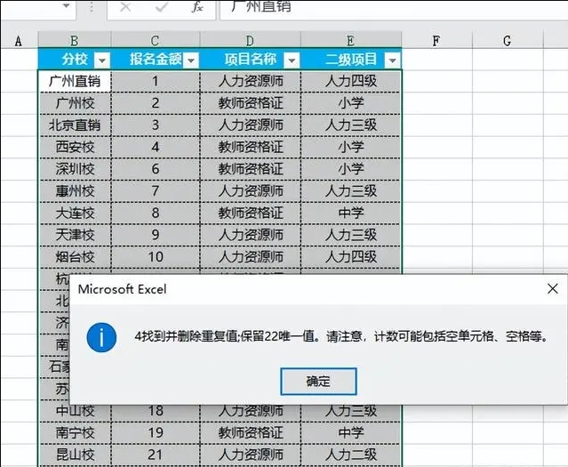 点击【确定】后,弹出提示,找到了多少个重复值,保留了多少唯一值等,如下图所示。