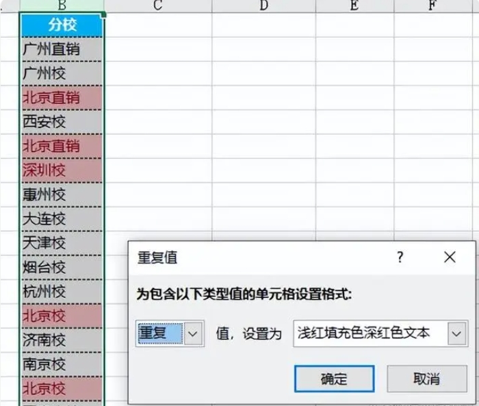点击【确定】后,重复值标记完成,当然也可以标记唯一值,如下图所示。