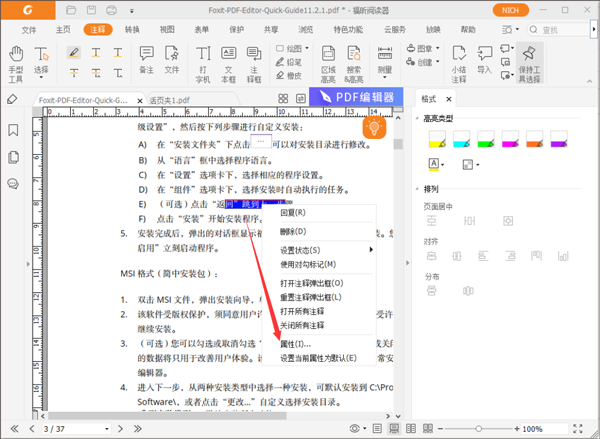 随后将鼠标移入高亮处,点击鼠标左键,进入注释格式,在这里,我们可以修改高亮的颜色