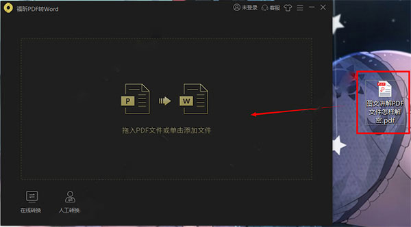 2、安装完成后打开文件,把PDF文件拖拽进软件界面。
