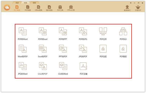 支持15种互转:如PDF、Word、Excel、PPT、JPG等格式互转,如pdf转word、pdf转jpg、Word转PDF等;并提供PDF加密、PDF解密、PDF合并、PDF拆分、PDF压缩等功能。