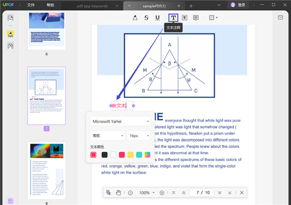 它可以轻松编辑PDF文件中的文本内容、图片内容、甚至是添加超链接。在页面左侧选择编辑功能后就可以对文本属性进行调整,例如字体、大小、颜色、样式和字样等都可以直接调整。UPDF 独有的文本拖拽能力,能将网页或其它文档中文字内容直接拖拽到 PDF 文档中,并能保持原文本的样式。这一点是大大提高了效率,比一般的复制粘贴更简单便捷。