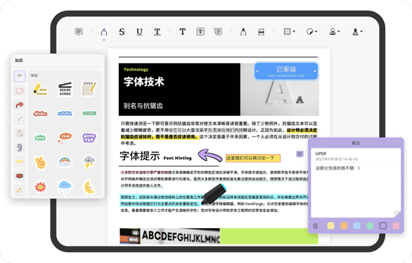 在注释功能上,该软件提供了多样化的选择,铅笔,便签,高亮,删除线,各种下划线,文本,文本框,文本标注,图形它都有!MAC端还支持橡皮,贴纸,签章,还有签名,上百种贴纸功能也让注释既醒目又美观。