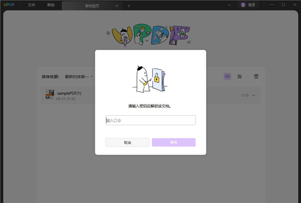 2、在打开受密码保护的PDF时,UPDF将要求输入密码。