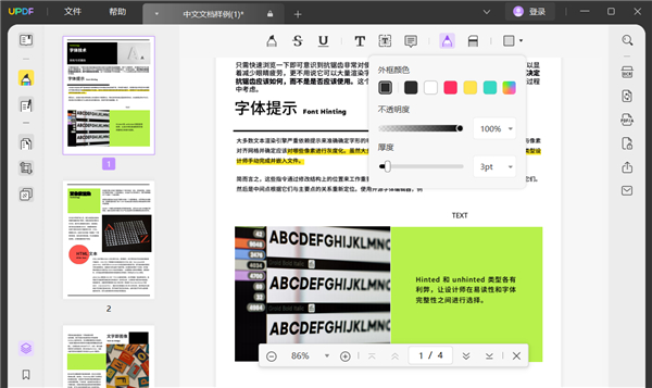 UPDF的阅读体验就像他的界面风格一样格外清新,只需拖拽 PDF 文档到软件中即可打开阅读,即使是打开一个1G以上的超大文档,也很丝滑流畅,不会卡顿这样的情况,阅读体验甚至比Adobe还好。通过关键词搜索即可快速找到你要阅读的内容,四种不同的阅读模式让用户自由选择。它采用了浏览器的标签的形式,可以同时打开多个PDF文件操作,UPDF独有的幻灯片播放模式,让用户可选择直接播放或以演讲者模式播放内容。