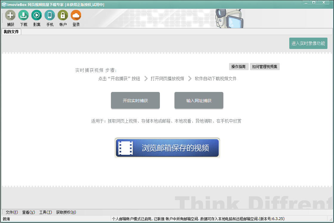 如果在线看很慢,就下载下来看,如果想在异地调取,就放到你的邮箱里。需要说明的是:imoviebox对于加密的商业视频有可能无法捕获或下载,你可能需要下载一些专门的视频工具来下载。