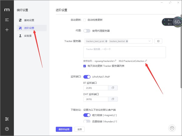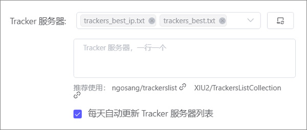对于BT下载,可以手动添加tracker服务器,还可以自动更新tracker服务器列表,让你的BT下载时刻得到加速。