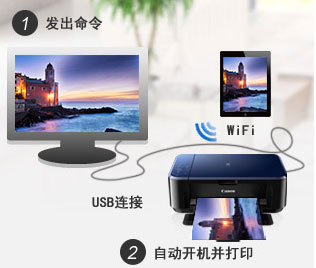 当打印机处于睡眠状态时,从任何设备端通过无线或USB连接发出打印命令,打印机都将自动开启电源并开始打印工作,让打印更便捷而环保。