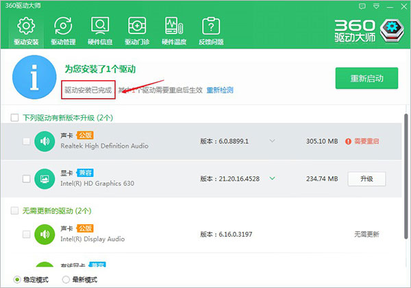 360驱动大师离线版是一款集成了网卡驱动的驱动程序,保证您所下载的驱动不带病毒,真正体验一键化安装和升级的驱动的乐趣。该软件不仅拥有驱动安装、驱动管理、硬件信息、驱动门诊四大功能,而且拥有庞大和安全无病毒的驱动库支持,能够准确的驱动匹配,让驱动安装更加简单,只需一键即可安装,无需手动操作,让用户彻底摆脱那繁琐的安装程序,首创的驱动体检技术,让您更直观了解自己电脑的状态,有需要的小伙伴们还等什么,赶快下载体验吧。