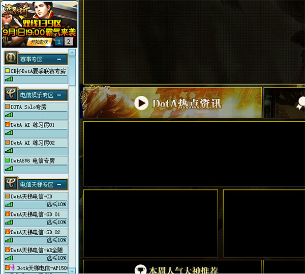 2、选择完成后我们进入到魔兽RPG界面,如下图所示,我们可以看到在界面左侧有房间选择,这里需要注意同房间里可以创建的地图是不一样的,我们选择好房间后点击进入。