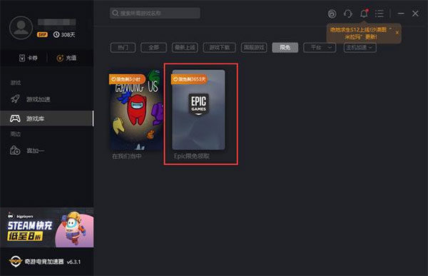注册外服账号和登录需要用到奇游加速器,下载安装奇游加速器后,加速“Epic商店”: